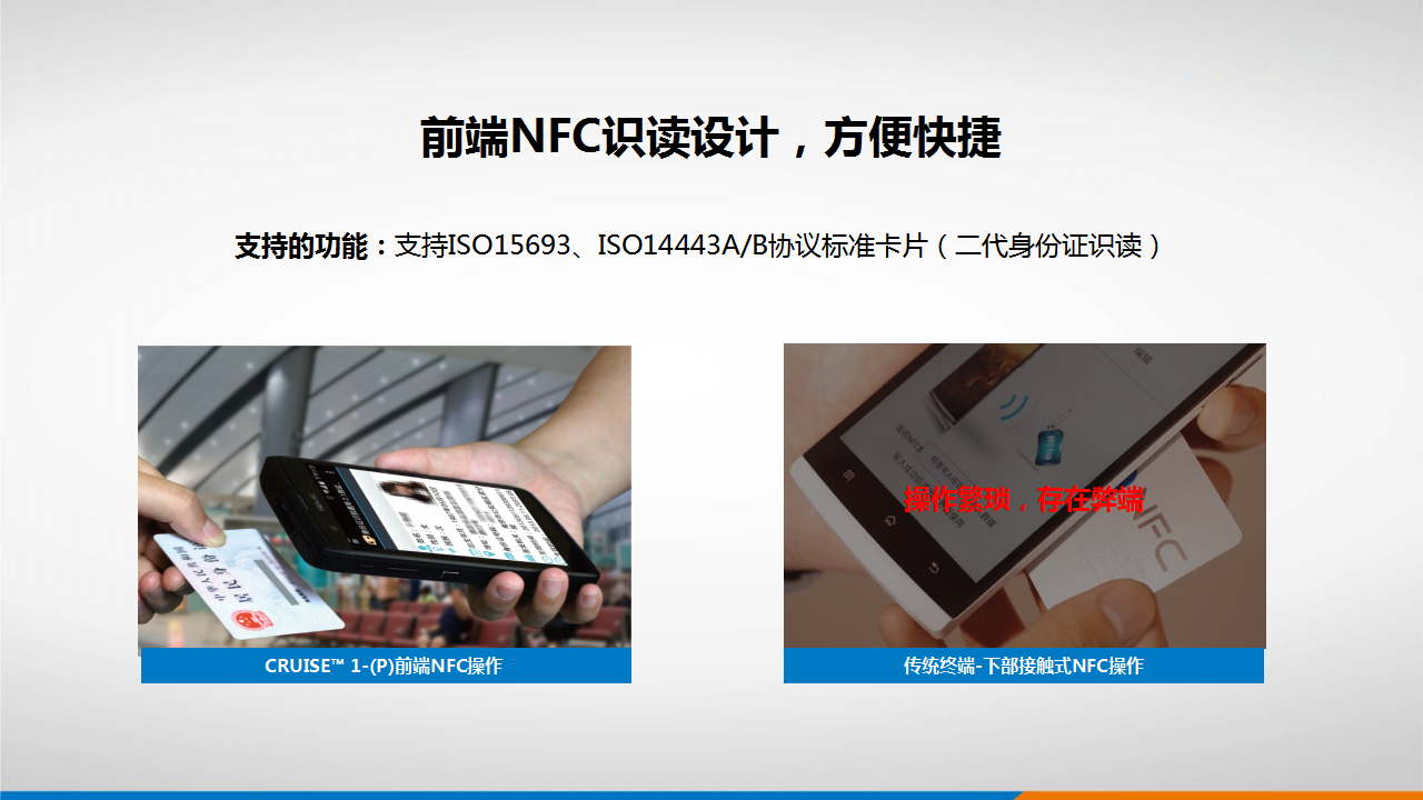 RFID读/写(HF):可读写标签:支持ISO15693、ISO14443A/B(不带加密协议)、ISO14443A带加密协议的标签(Mifare one S50,S70及其兼容卡片);支持NFC协议。读取距离:0-6cm (ISO15693),0-4cm(ISO14443A),0-1cm(ISO14443B)(与标签有关)距离与标签有关